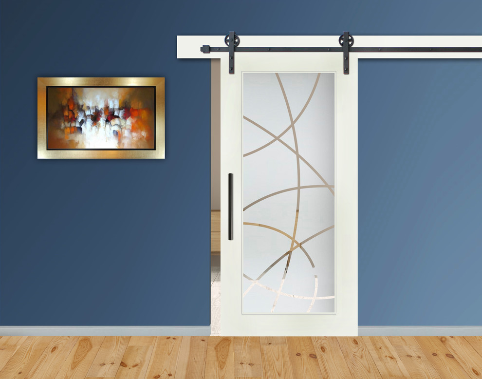 1 Lite Shaker Mdf Sliding Barn Door With Frosted Glass Insert 28x81 Right